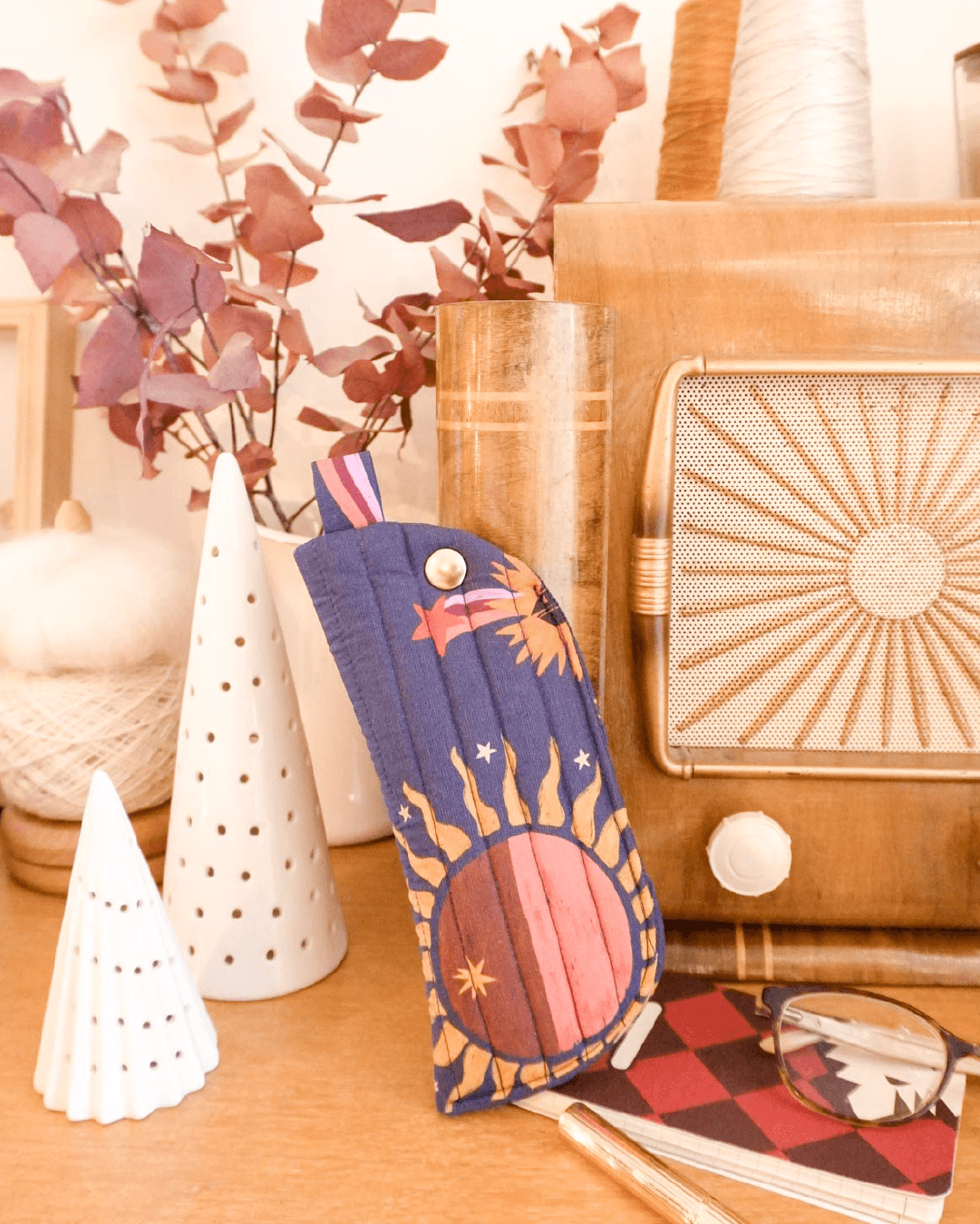 L’étui peut être réalisé dans vos chutes de coton, de jean, de velours ou même de simili cuir pour un résultat unique à chaque création. Mais la version matelassé sera idéal pour une protection optimale de vos lunettes.