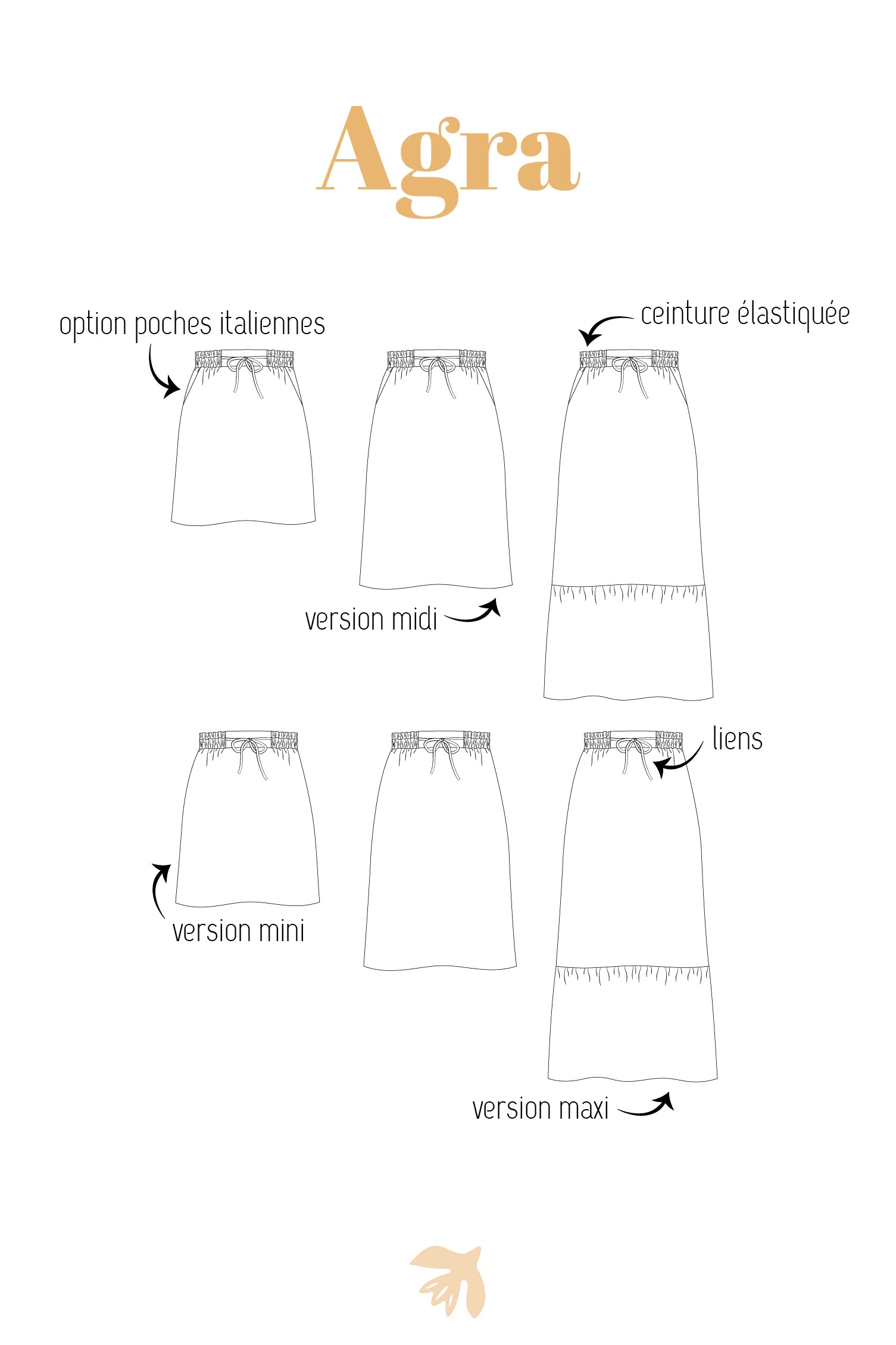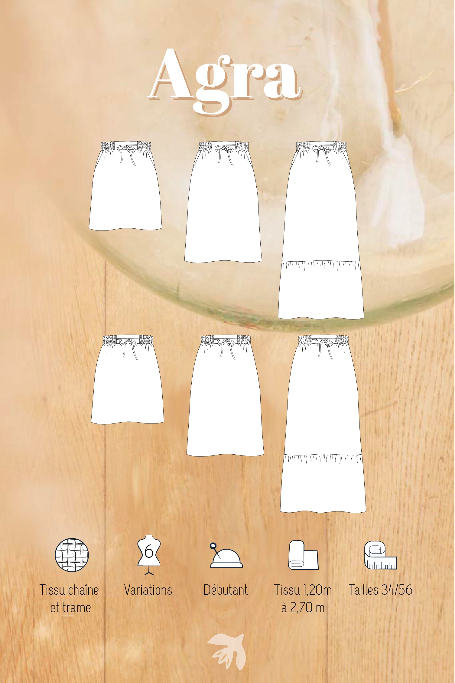 La jupe Agra est un patron pensé pour accompagner toutes les envies et toutes les saisons, avec une allure à la fois simple, féminine et facile à porter au quotidien.