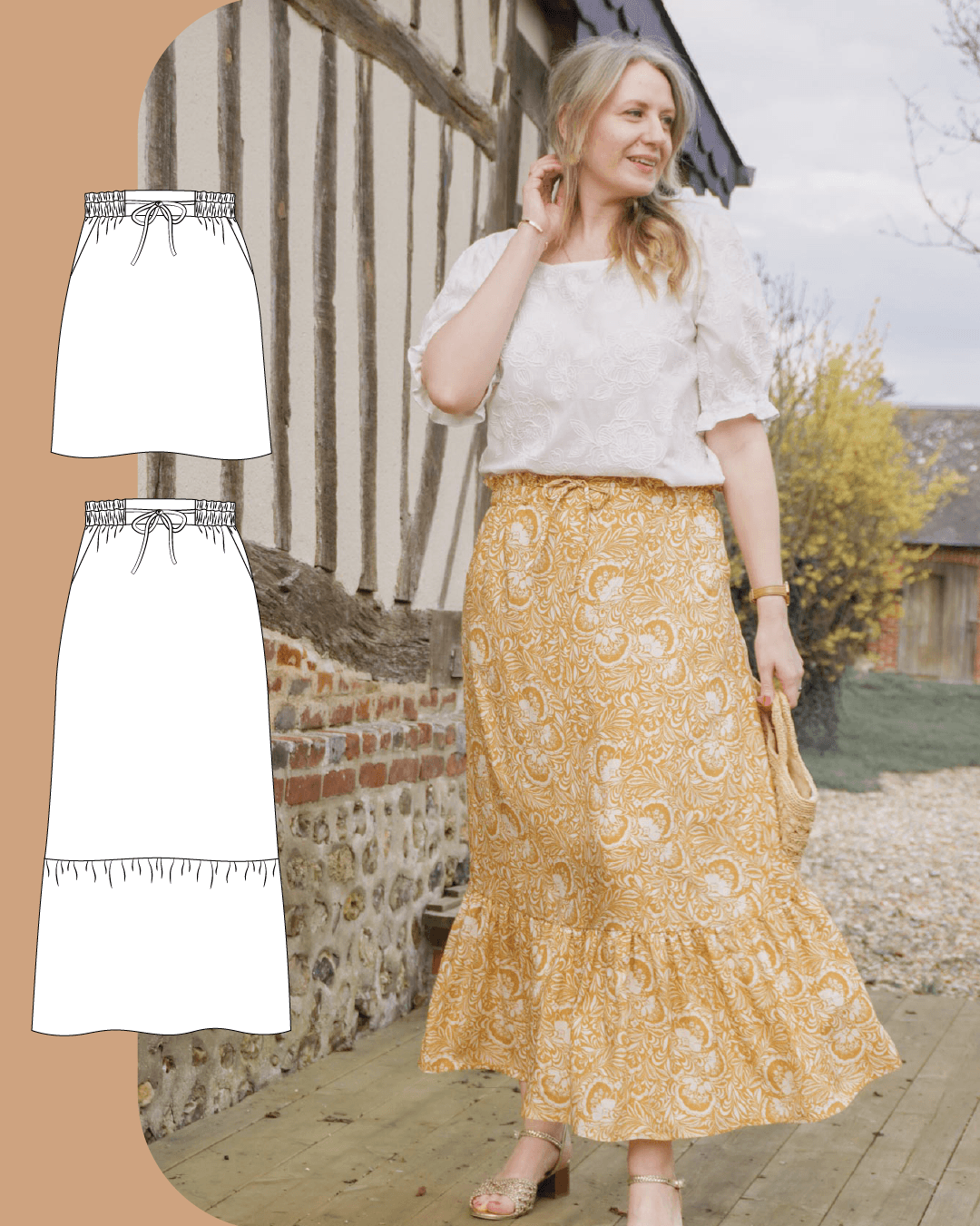 Un modèle accessible aux couturières débutantes motivées, qui souhaitent réaliser une jupe personnalisable, modulable et rapide à coudre, tout en ajoutant une pièce forte et versatile à leur dressing fait main.
