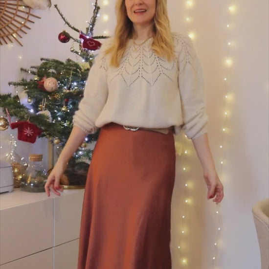 La jupe dans le biais ou le patron sur-mesure idéal pour une jupe ultra chic et pas si compliqué à réaliser. On opte pour un tissu satiné, uni ou im- primé et le tombé de la coupe dans le biais fera le reste ! Composez vous même votre patron à l’aide de quelques mesures et adaptez la longueur de la jupe selon vos envies.