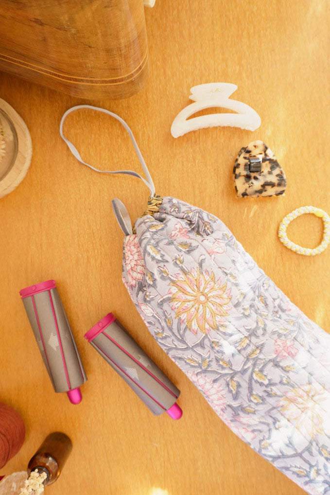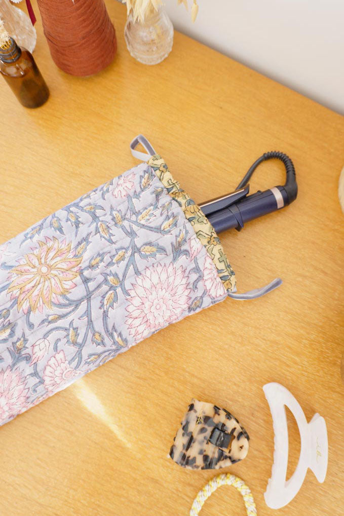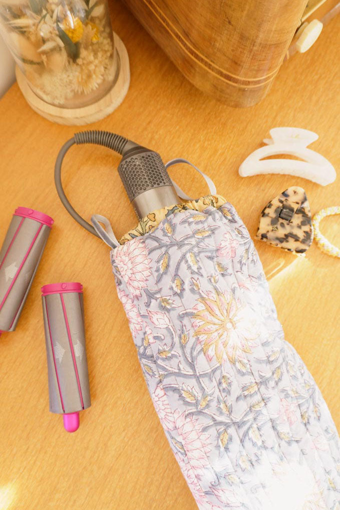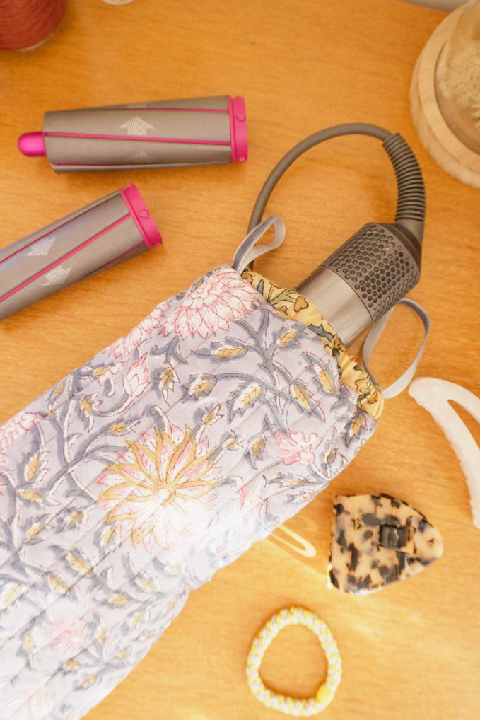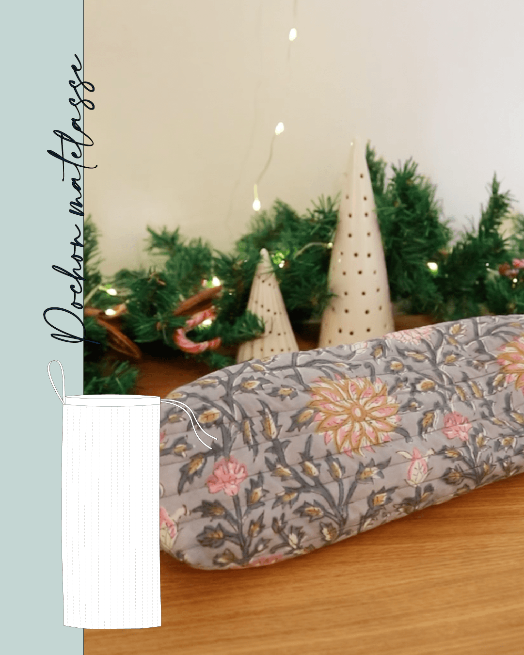 Le pochon matelassé est un joli projet idéal pour débuter le matelassage tout en confectionnant un accessoire très utile pour y glisser des éléments fragiles comme un lisseur à cheveux ou un sèche cheveux. Vous pouvez adapter les mesures selon les éléments que vous souhaitez protéger ou en profiter pour transformer le pochon en paquet cadeaux pour faire plaisir à vos proches avec une bouteille de champagne par exemple ;)