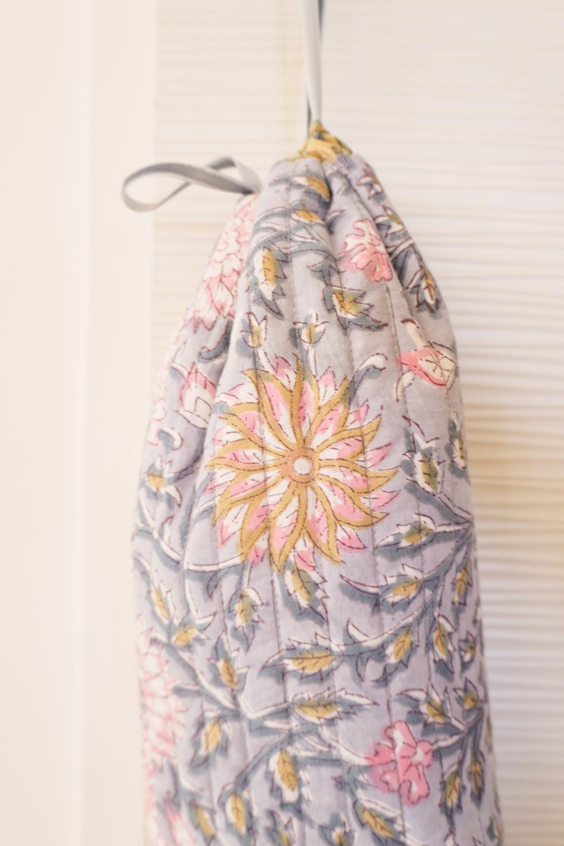 Le pochon sera idéal à réaliser dans une cotonnade, mais égale- ment en toile canvas ou tout type de tissu fin pouvant être matelassé. Vous pouvez jouer sur un matelassage avec des fils contrastant, doré ou ton sur ton selon vos envies.