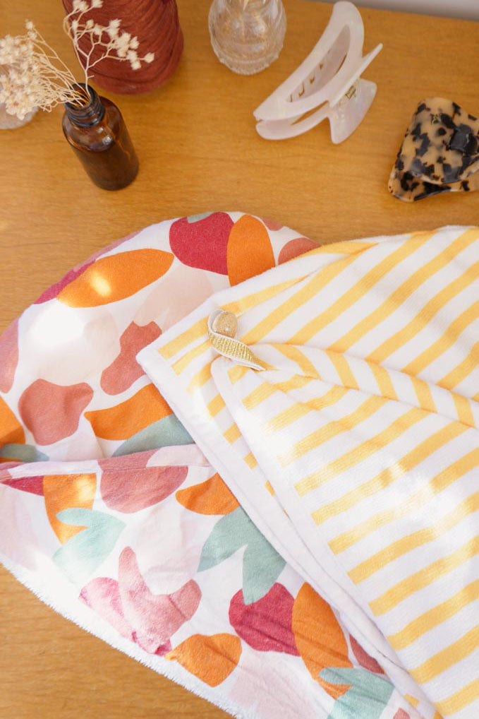Un petit projet facile à coudre et accessible aux débutants : la serviette turban ! Rapide à coudre, la serviette turban est décliné en taille adulte et taille enfant pour permettre de pré-sécher vos cheveux plus rapidement.